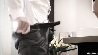 The brutal owner of the house often looked at his young maid and her short dress. Chick went with different accessories around the house and cleaned when he unexpectedly approached her, and led him to the sofa. The guy undressed her, and began to masturbate her pussy while she sucked him. And after that he put a dick in her vagina.