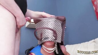 When a man learned how much it cost a bag, which his wife bought, he got mad and decided to severely punish his wife. Putting the bag on the woman's head, he sat behind her and roughly fucked the dark-haired MILF in her tight anus. After anal sex, the husband gave the bitch lick his cock.